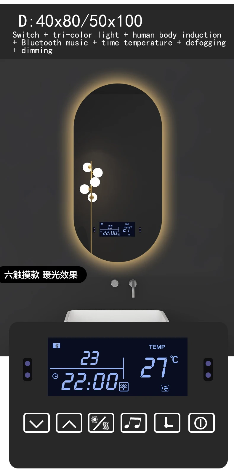 2. Зеркальный светодиодный светильник может работать только в течение не более 2 часов из-за соображений безопасности цепи.