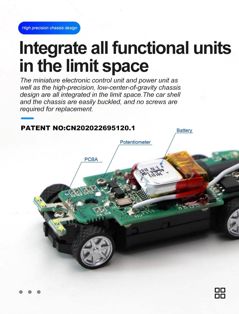 Полностью пропорциональное управление (рулевое управление/вождение) в очень маленьком сегменте мини-автомобиля.