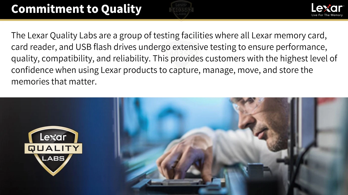 Все модели Lexar проходят обширное тестирование в лабораториях качества Lexar, оборудованиях с более чем 1100 цифровыми устройствами, чтобы обеспечить производительность, качество, совместимость и надежность.