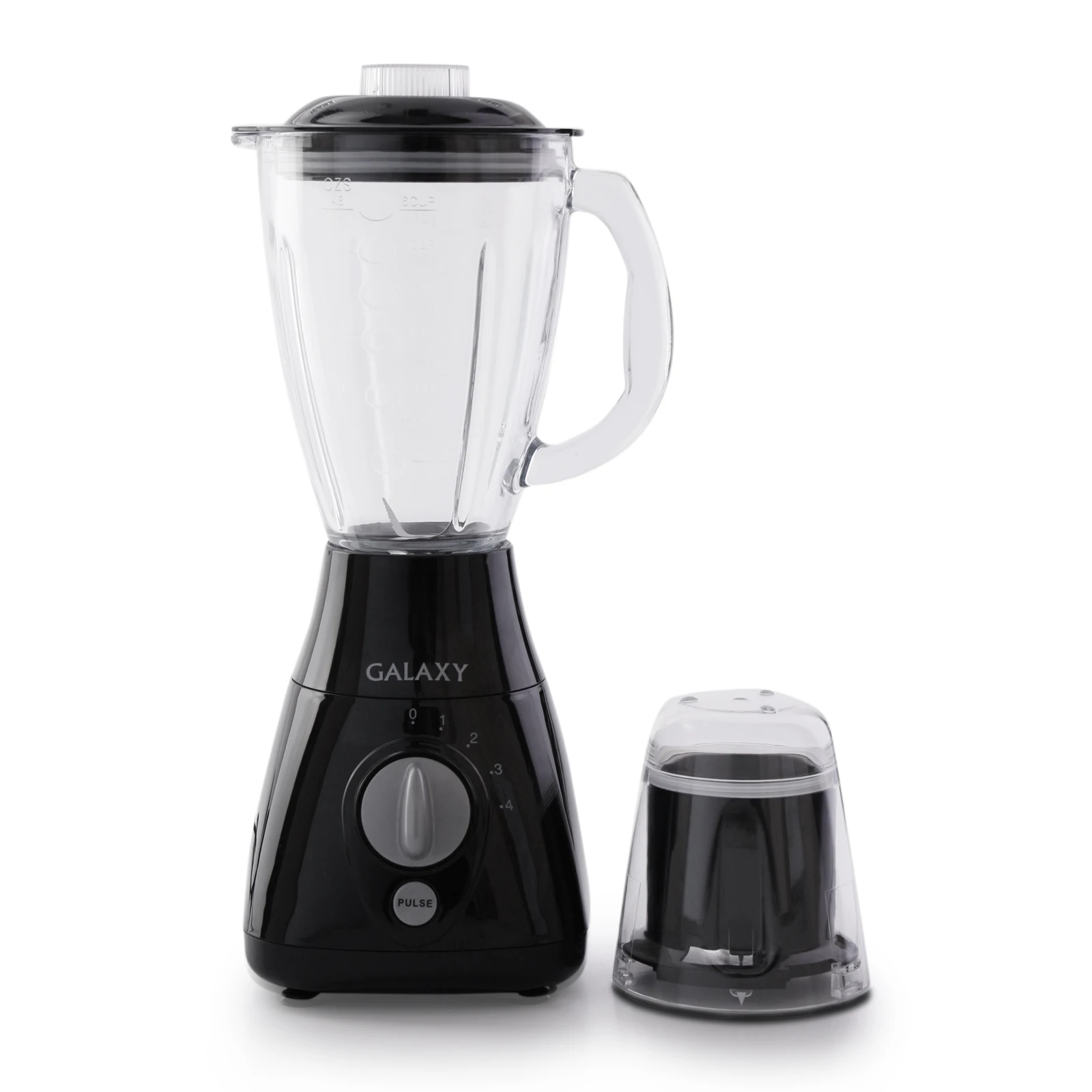 Стационарный блендер Galaxy gl2155 имеет стильный дизайн в пластиковом корпусе черного цвета.