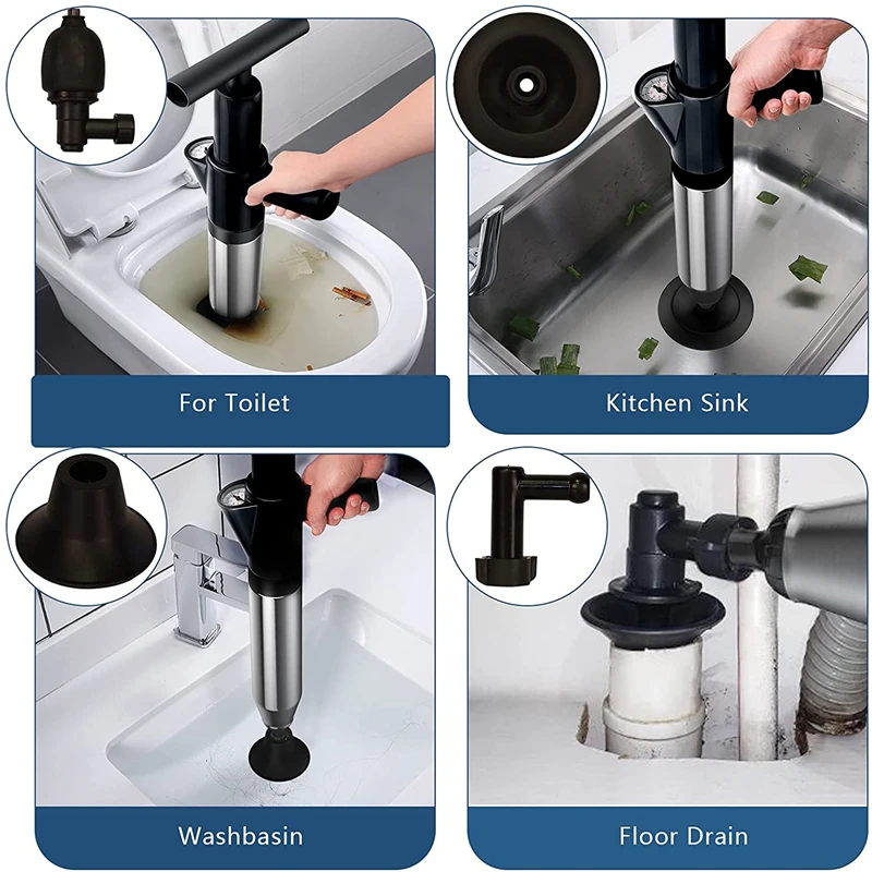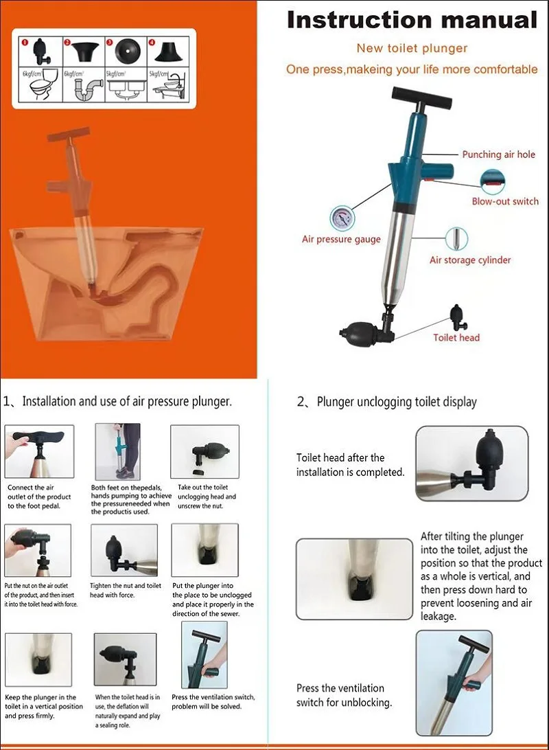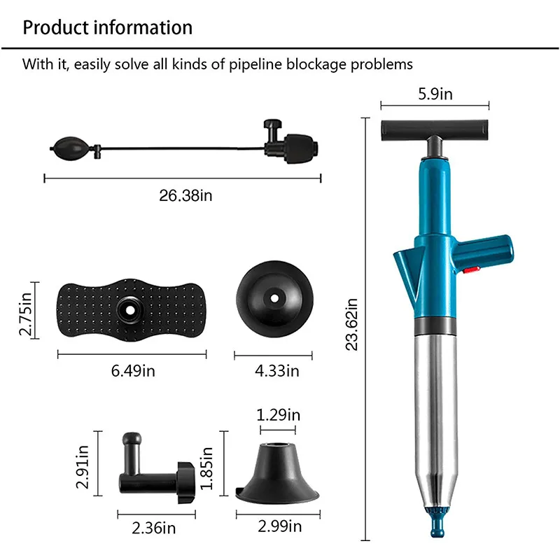 Простой и простой в использовании, просто надуйте воздушный пакет и вставьте заблокированную сливную трубу, а затем нажмите кнопку «воздух» в туалет или раковину.