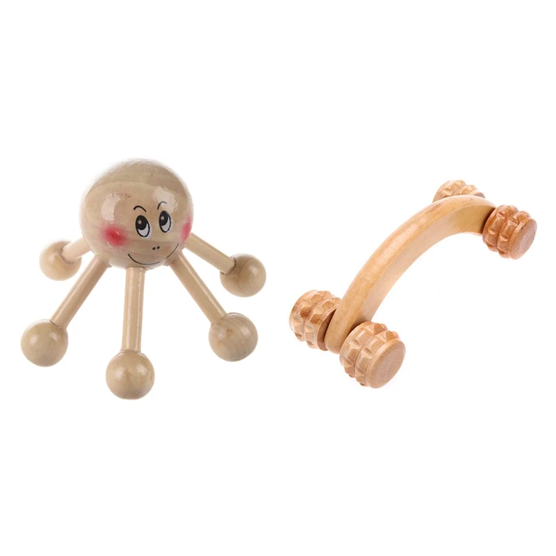 1 шт., 6 точек, деревянный массажер для головы и 1 шт., ручной деревянный массажер с 4 колесами, массажер для тела