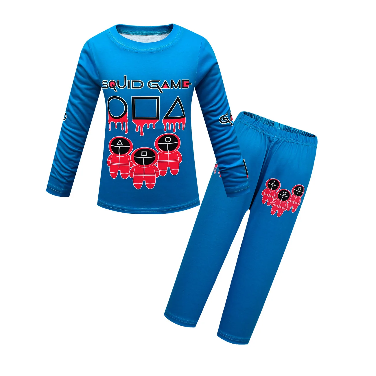 Отзывы о Длинная футболка + штаны игра кальмар детские пижамы для мальчиков и девочек