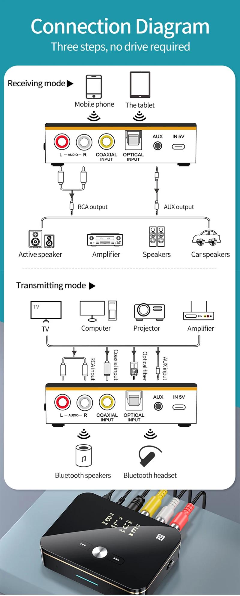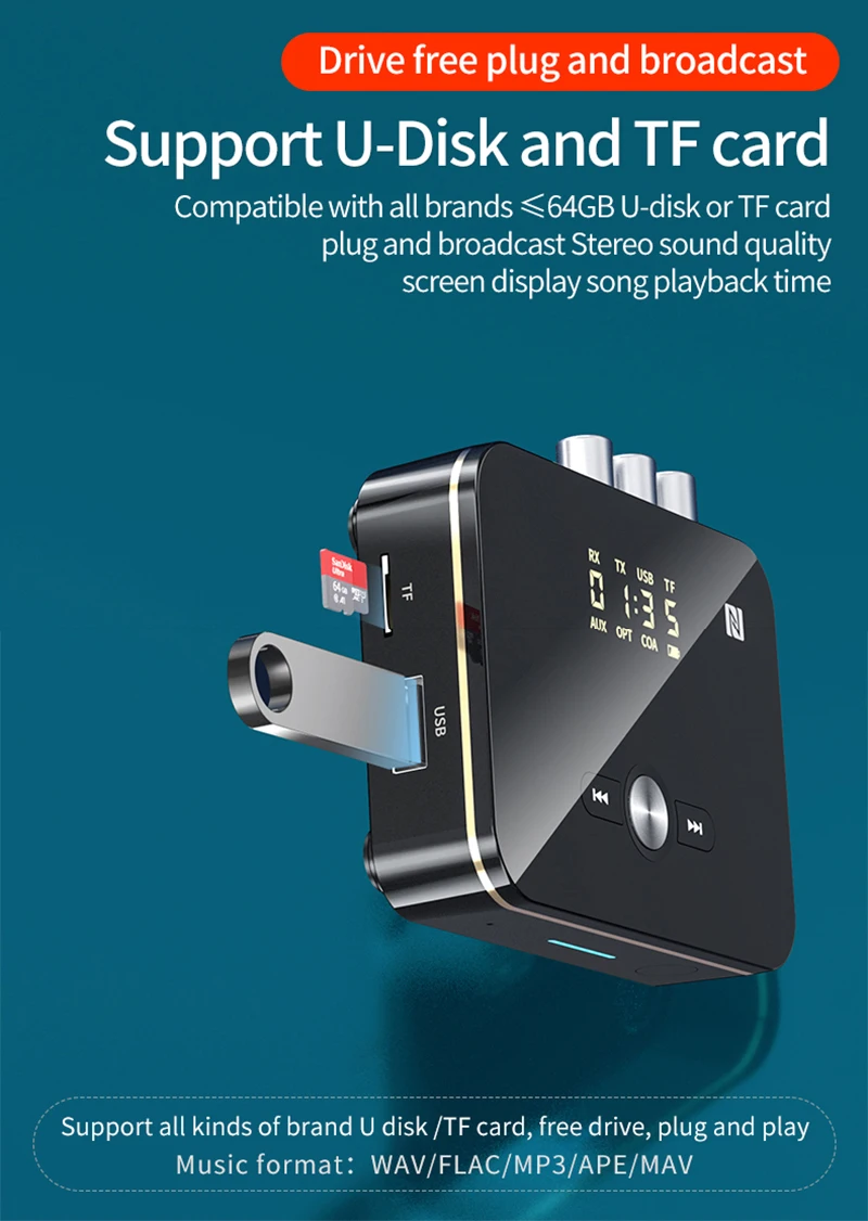 Отзывы о NFC Bluetooth 5 0 передатчик приемник 3 мм RCA оптический коаксиальный TF/U диск