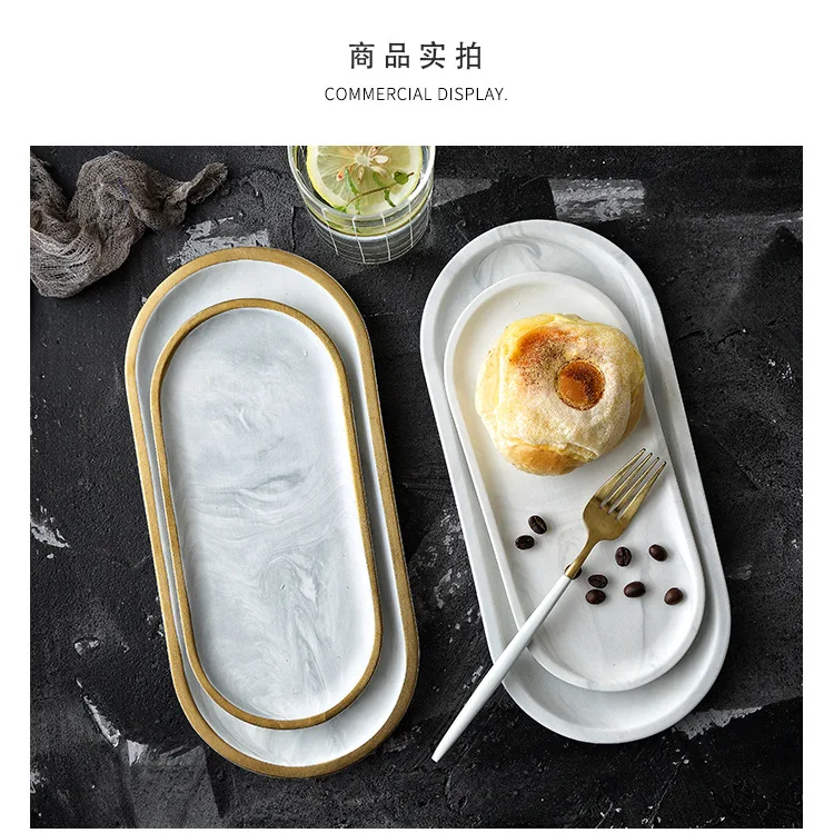 Скандинавский мраморный белый керамический поднос для хранения овальная Западная тарелка для десерта Бытовая настольная декоративная тарелка для ювелирных изделий
