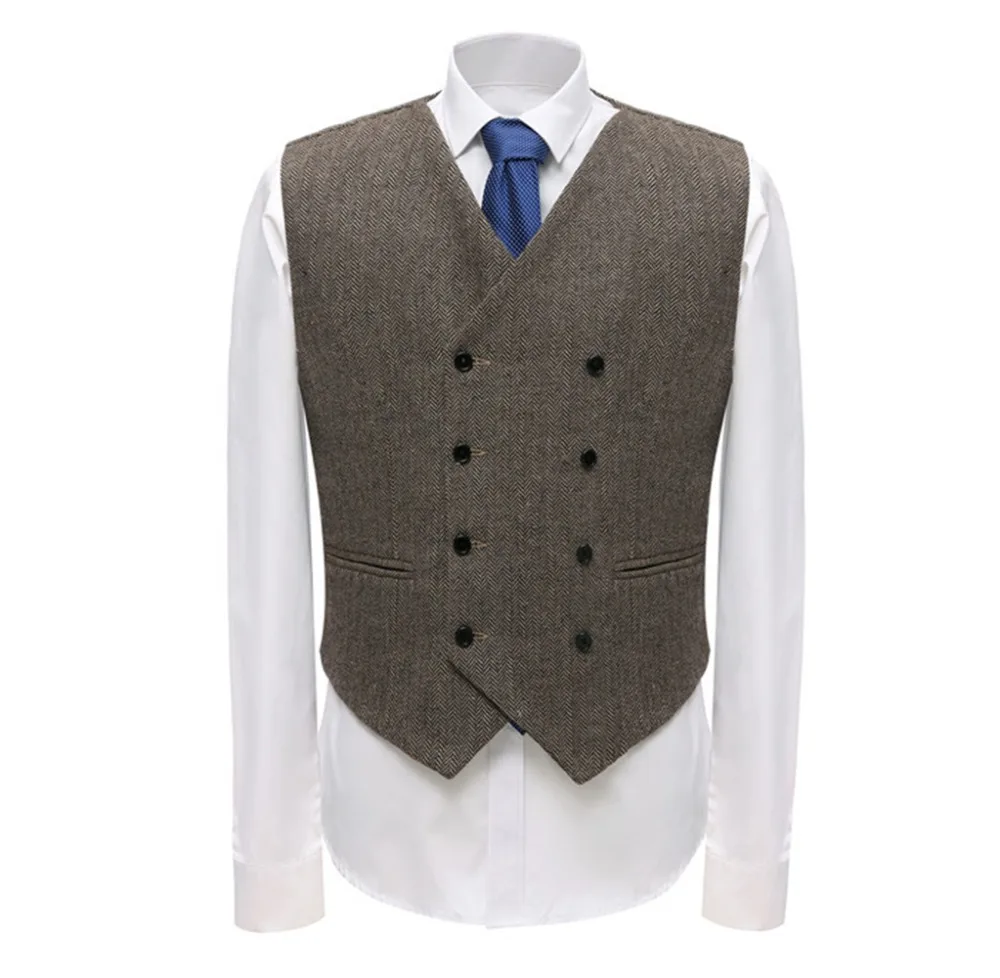 Отзывы о Мужской твидовый деловой костюм двубортный жилет в елочку шерстяной для свадьбы
