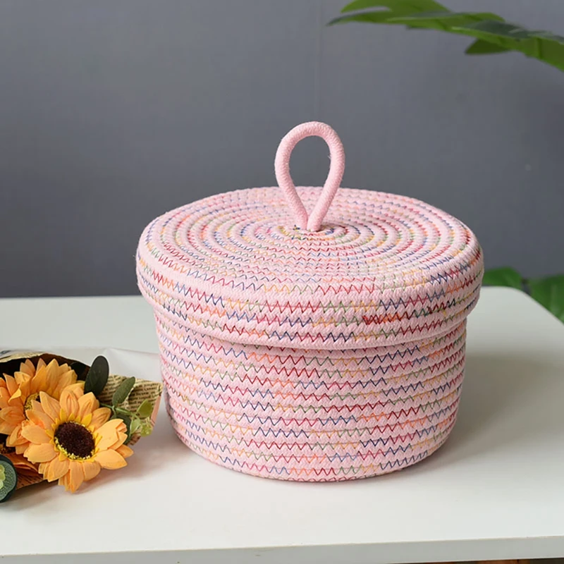 Отзывы о Розовая корзина для хранения с крышкой корзины из хлопкового шнура декоративные