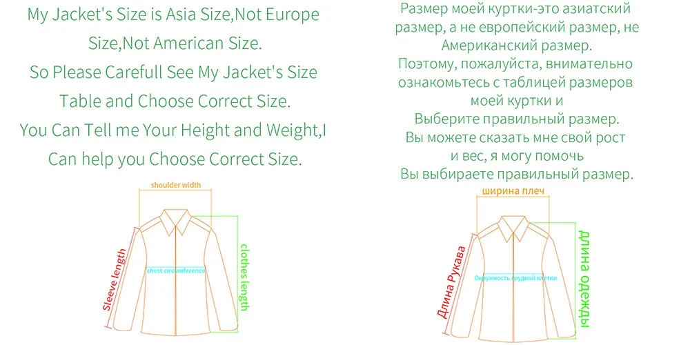 Если вы не больны по поводу размера, пожалуйста, сообщите нам рост/вес/грудь/рукав/плечо.