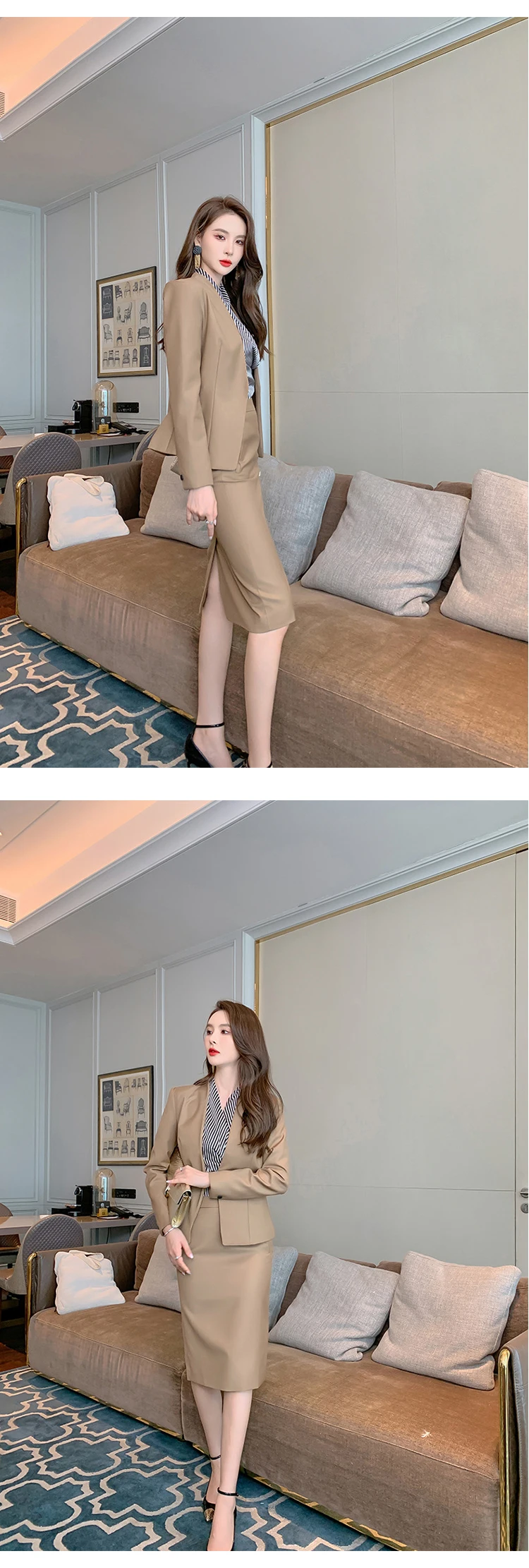 Отзывы о Женский винтажный комплект из 2 предметов пиджак с V-образным вырезом и длинным