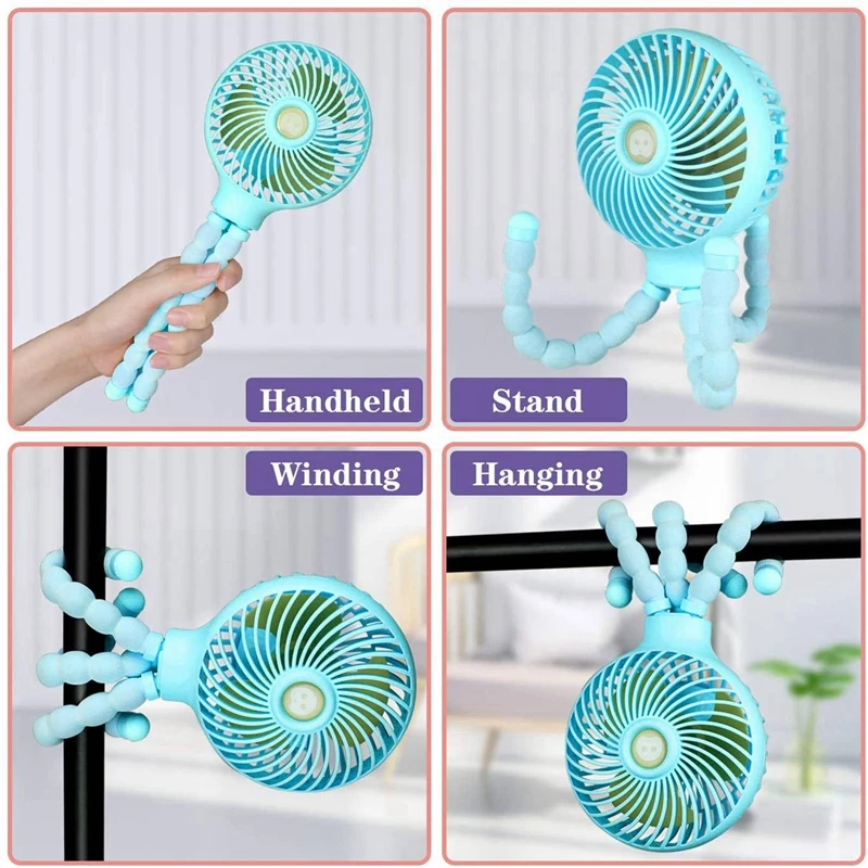 2 вентилятора коляски: 1 синий и 1 розовыйШтатив-Осьминог по сравнению с традиционным мини-вентилятором, этот маленький вентилятор с уникальным гибким дизайном штатива, вы можете согнуть любой угол, захватить его, обернуть его, выдержать его, сохранить его долговечным, гибкий и стабильный