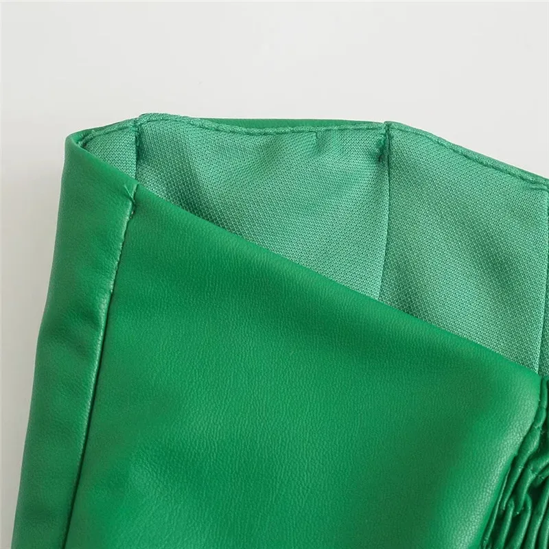 Отзывы о Топ женский укороченный из искусственной кожи с открытыми плечами и рюшами -