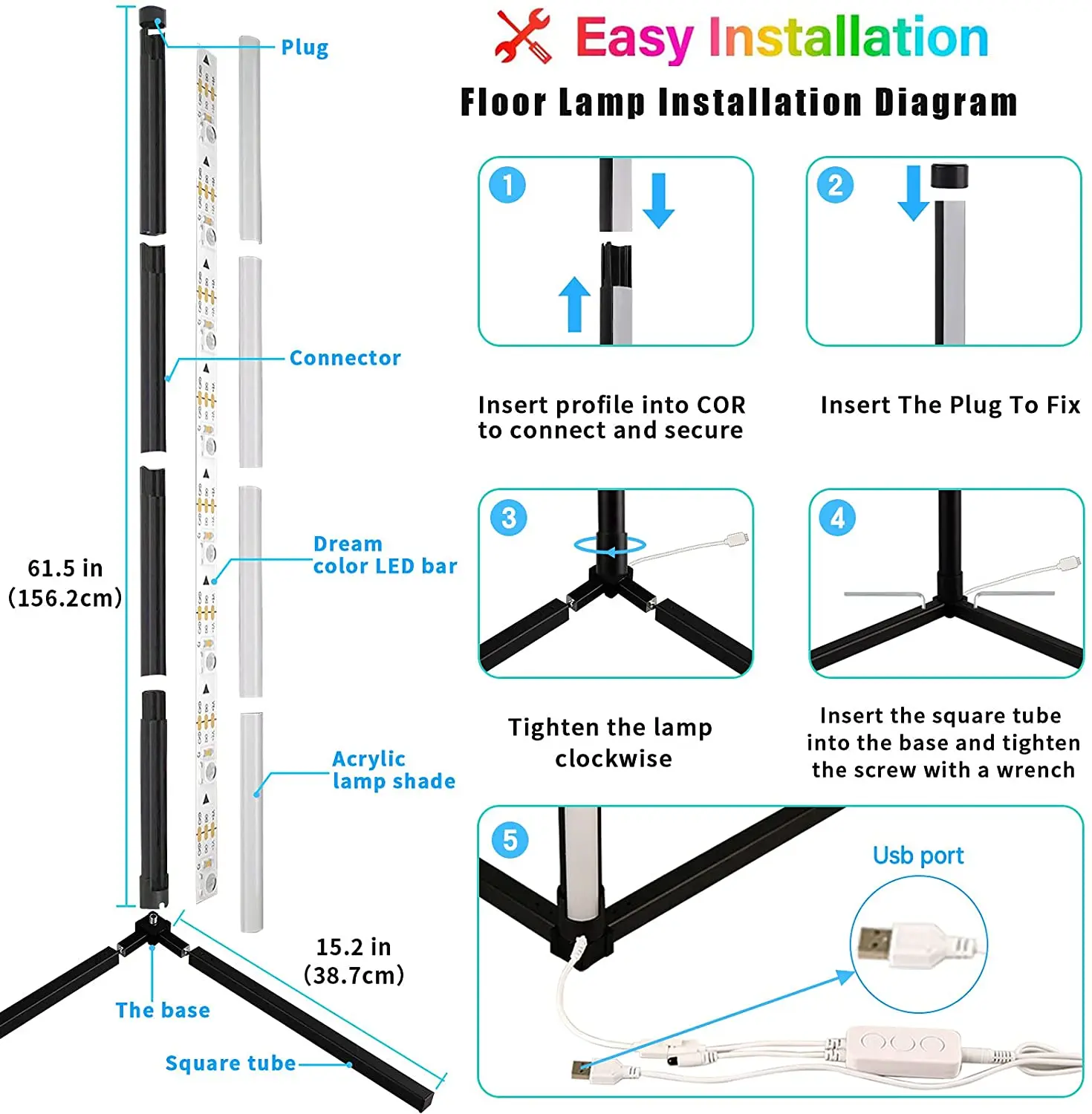 Цветная угловая Напольная Лампа Dream RGB, СВЕТОДИОДНЫЙ торшер с пультом дистанционного управления, 150 см, современный декоративный светильник, светодиодный торшер с регулируемой яркостью для игровой комнаты, гостиной, спальни USB