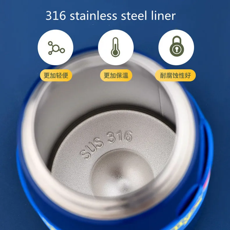 Изготовлен из 316 вкладышей из нержавеющей стали, пищевого мягкого силикона, 304 semblance из нержавеющей сталиСохраняет тепло 8-10 часов.Герметичность, без BPA.Примечание
