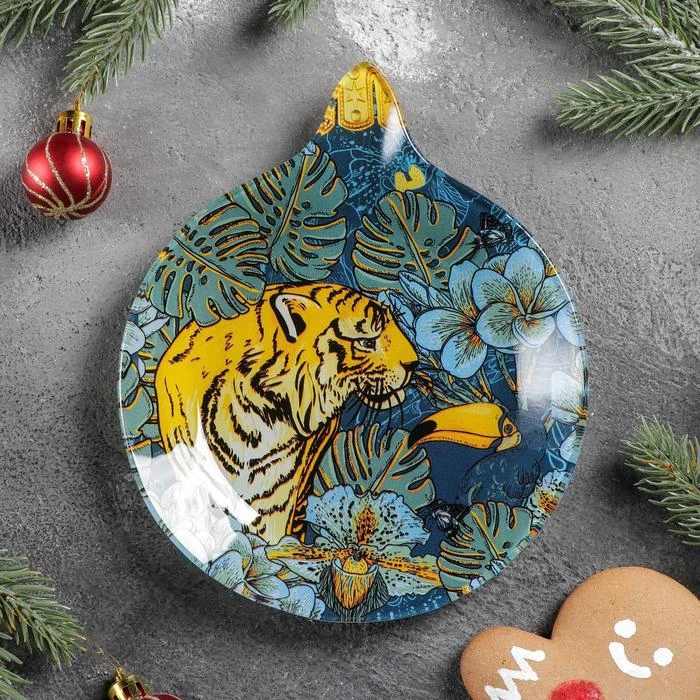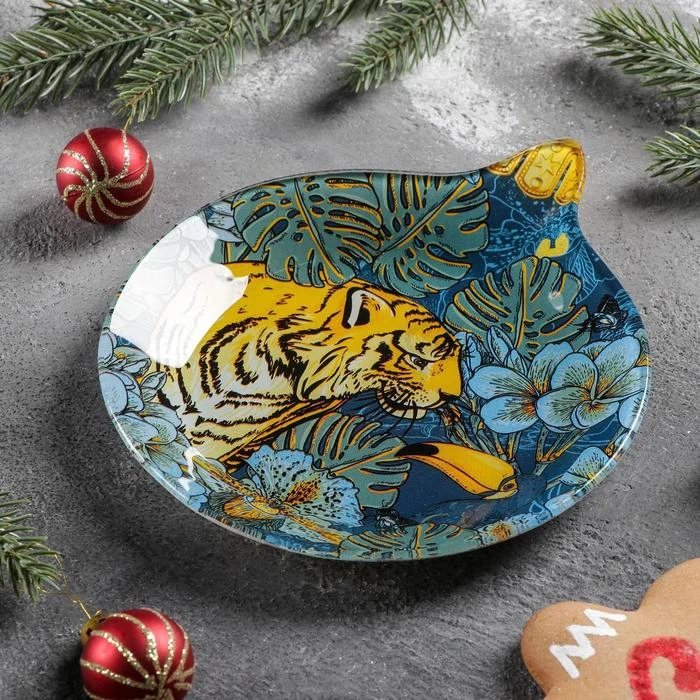 Отзывы о Блюдо сервировочное Доляна Ёлочная игрушка. Тигр в тропика× 18×15 2×2 см 6783234 | Дом и