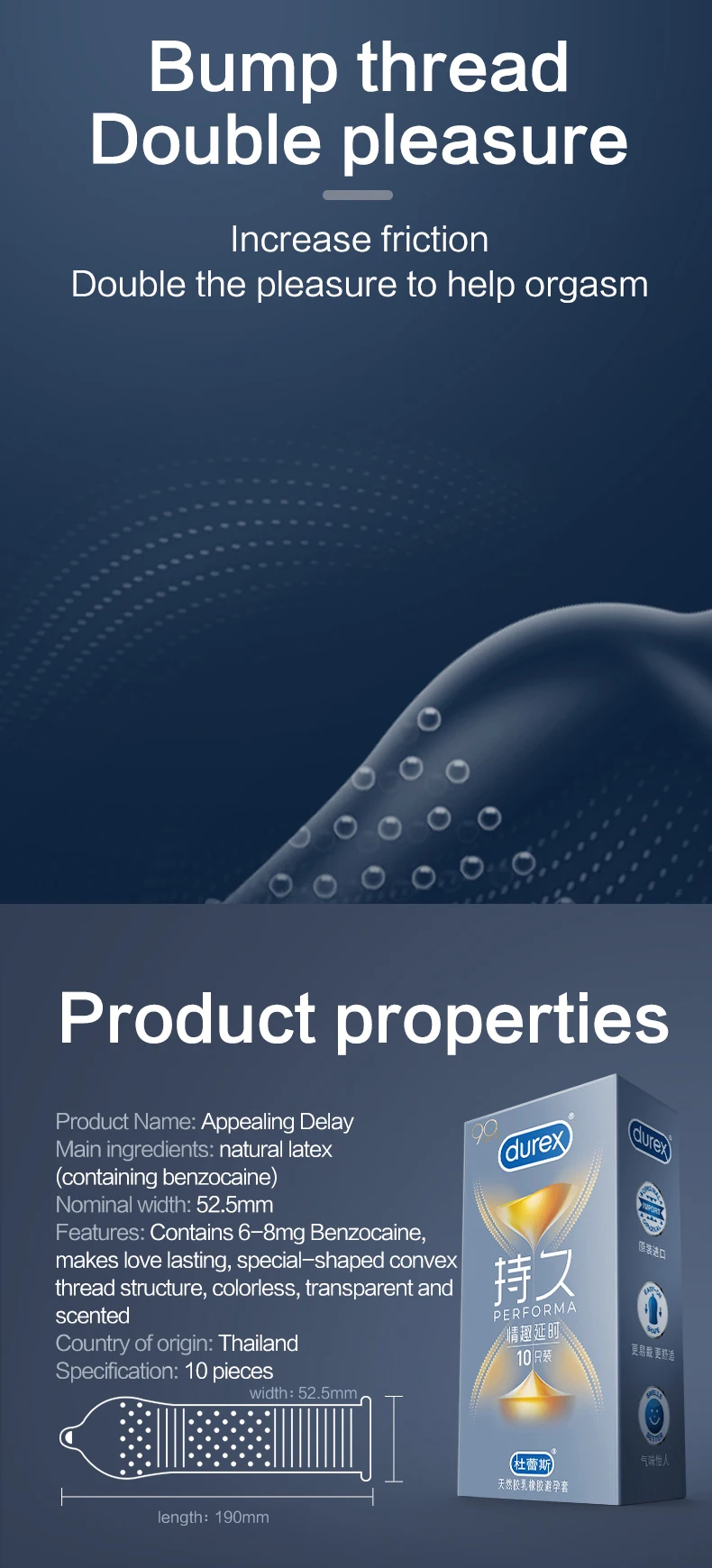 Durex длинные удовольствие презервативы Climax безопасная задержка длительный контроль кондомы со смазкой интимные товары сексуальные продуктыЗадержка, более прочный удобный и мягкий презерватив, легко носить форму, верхняя часть внутренней стенки презерватива имеет специальную смазку (имеет функцию задержки) сделано всемирно известным брендом Durex, это безопасная и надежная задержкаНаучная задержкаСША FDA Рекомендуемая концентрация *Содержит 6-8 мг (около 5% концентрации) бензокаинаАвторитетное руководство для дозировки более легкоБезопасно использовать после тестирования кожи *Синяя Воронка 10 шт.: с функцией задержки