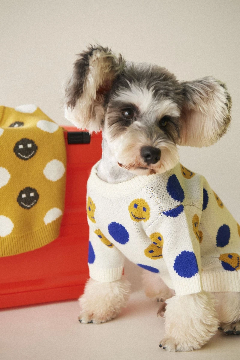 Зимний свитер для собаки для кошки, вязаный мягкий пуловер, костюм для собаки, милое пальто для домашних животных со смайликом, одежда для домашних животных, собака Кот Щенок