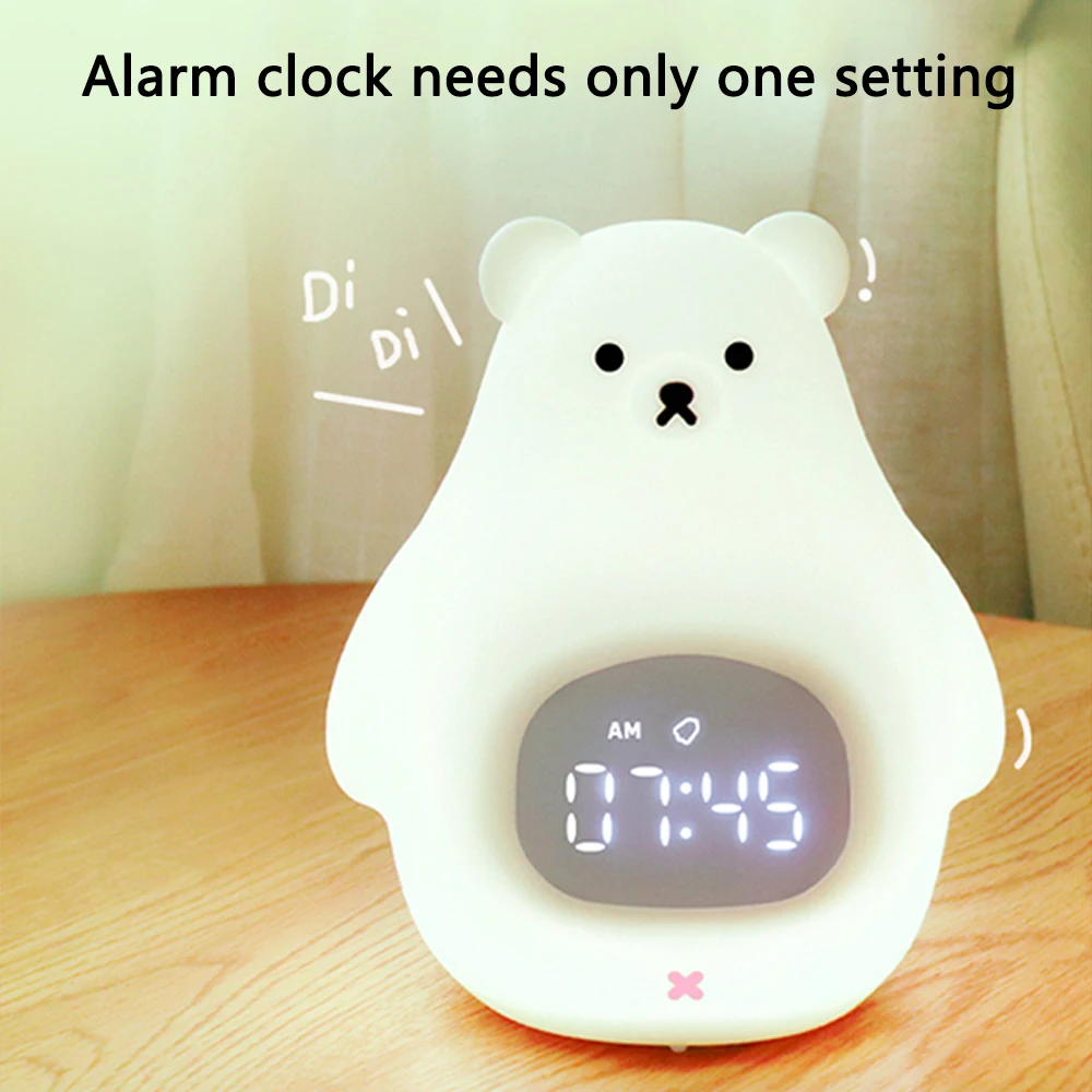 Отзывы о Милый детский будильник с силиконовым медведем светодиодный ночсветильник