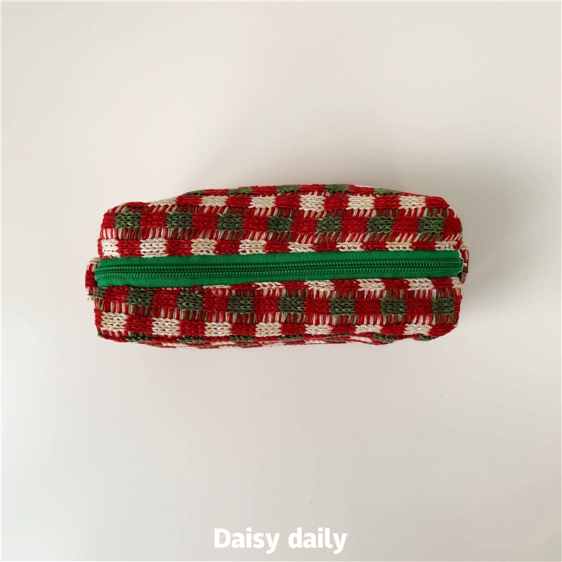 Отзывы о Корейская Ins Рождественская вязаная клетчатая портативная косметичка большой