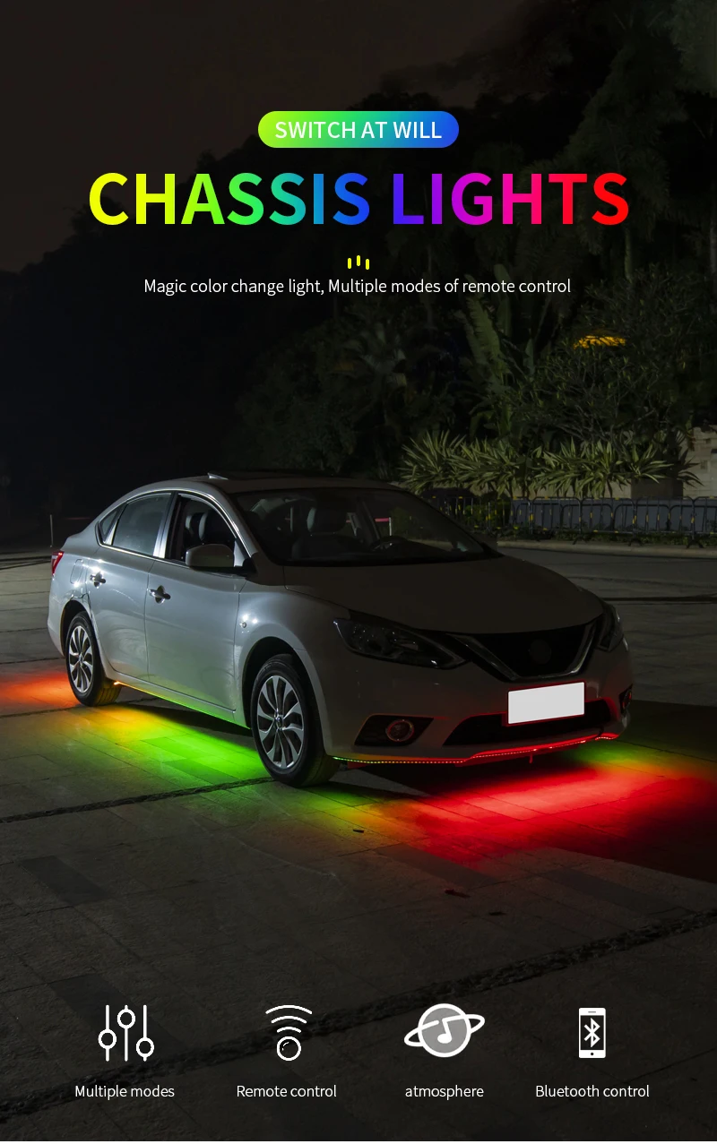 1.Активный звук-светодиодный индикатор под автомобилем оснащен звуковым датчиком для синхронизации светодиодный светильник с музыкальным ритмом. Светодиодный светильник-полоска для прослушивания музыки отслеживает удар и настраивает мигание, чтобы соответствовать интенсивности звука.