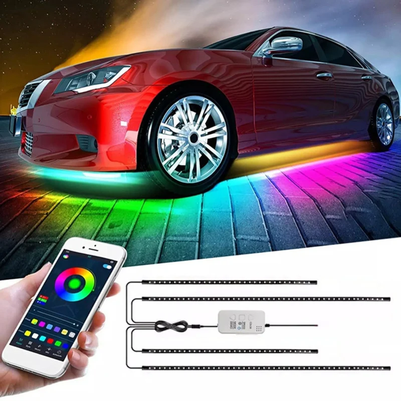Автомобильный светильник для нижнего тела, гибкая светодиодная лента, светодиодный светильник с пультом дистанционного управления, RGB многоцветная Водонепроницаемая атмосферная неоновая лампа