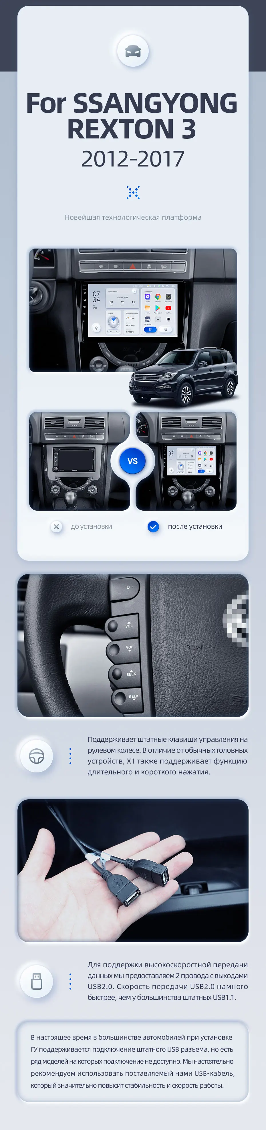 Отзывы о TEYES Тиайс X1 Штатная магнитола For СсангЙонг Рекстон Y290 SsangYong Rexton III 3 2012 - 2017 Android 10 до