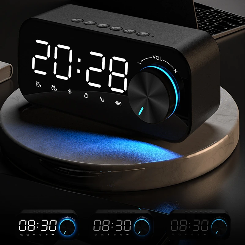 Портативный светодиодный сабвуфер, настольные часы, беспроводной Bluetooth-совместимый динамик, зеркальный экран, цифровой дисплей, будильник, despertador