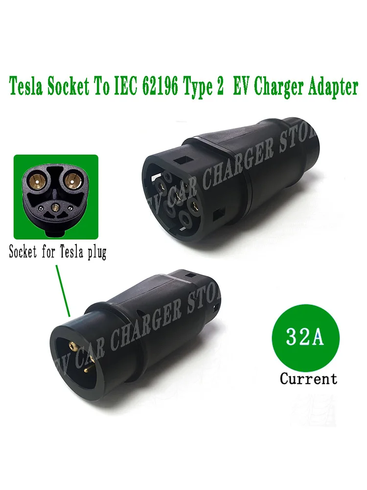 Car EV Charging Tesla Socket to Type 2 IEC 62196 Inlet Ev Charger Electric Vehicle Adapter 32A For Model S X 3 Y