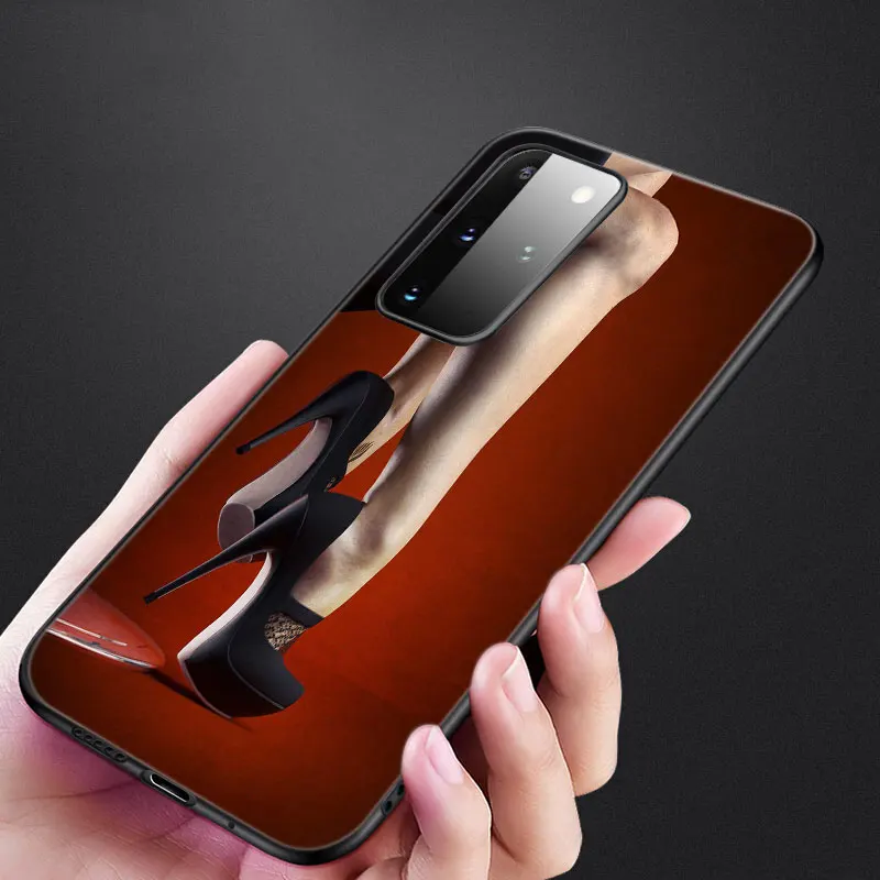 Сексуальный силиконовый чехол на высоком каблуке для Samsung Galaxy S22 Pro S21 S20 FE Ultra S10 Lite S8 S9 S10E S10 Plus, мягкий черный чехол из ТПУ