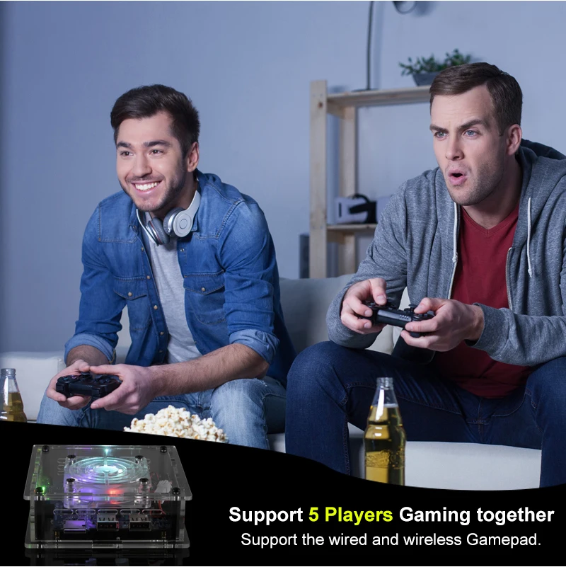 Обновление чипа S905X, скорость обработки и скорость работы являются более плавными. Новый прозрачный материал, прозрачный корпус с полным обзором. Для повышения эффективности охлаждения системы добавлен трехцветный цветной вентилятор aurora. Emuleec и система Android объединены в одну, мощную игровую систему, предварительно установленную С 70000 + играми и 50 + эмуляторами, которые могут идеально запускать PSP, PS1, N64 и т. Д. Android может просматривать информацию, устанавливать игры, использовать функции TV box и загружать такие приложения, как Google. Поддержка KODI, смотреть global TV бесплатно. Он поддерживает до 5 игр, позволяя вам и вашим детям быть близкими и испытать удовольствие от игры.