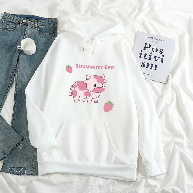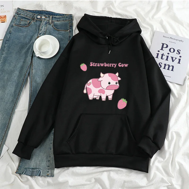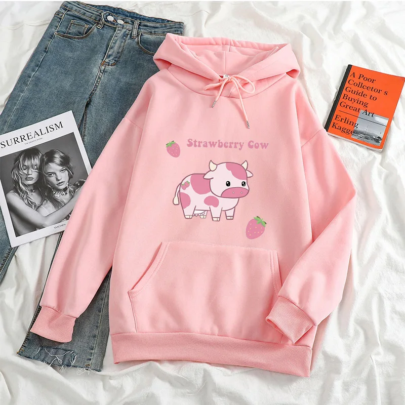 Отзывы о Женская флисовая толстовка с капюшоном длинным рукавом и принтом клубники -