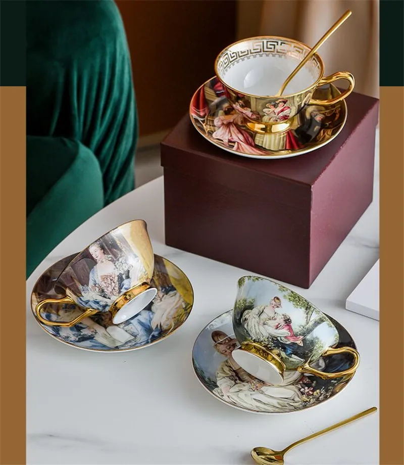 Отзывы о Керамический кофейный набор чашки и блюдца чайные кружки с золотыми ложками