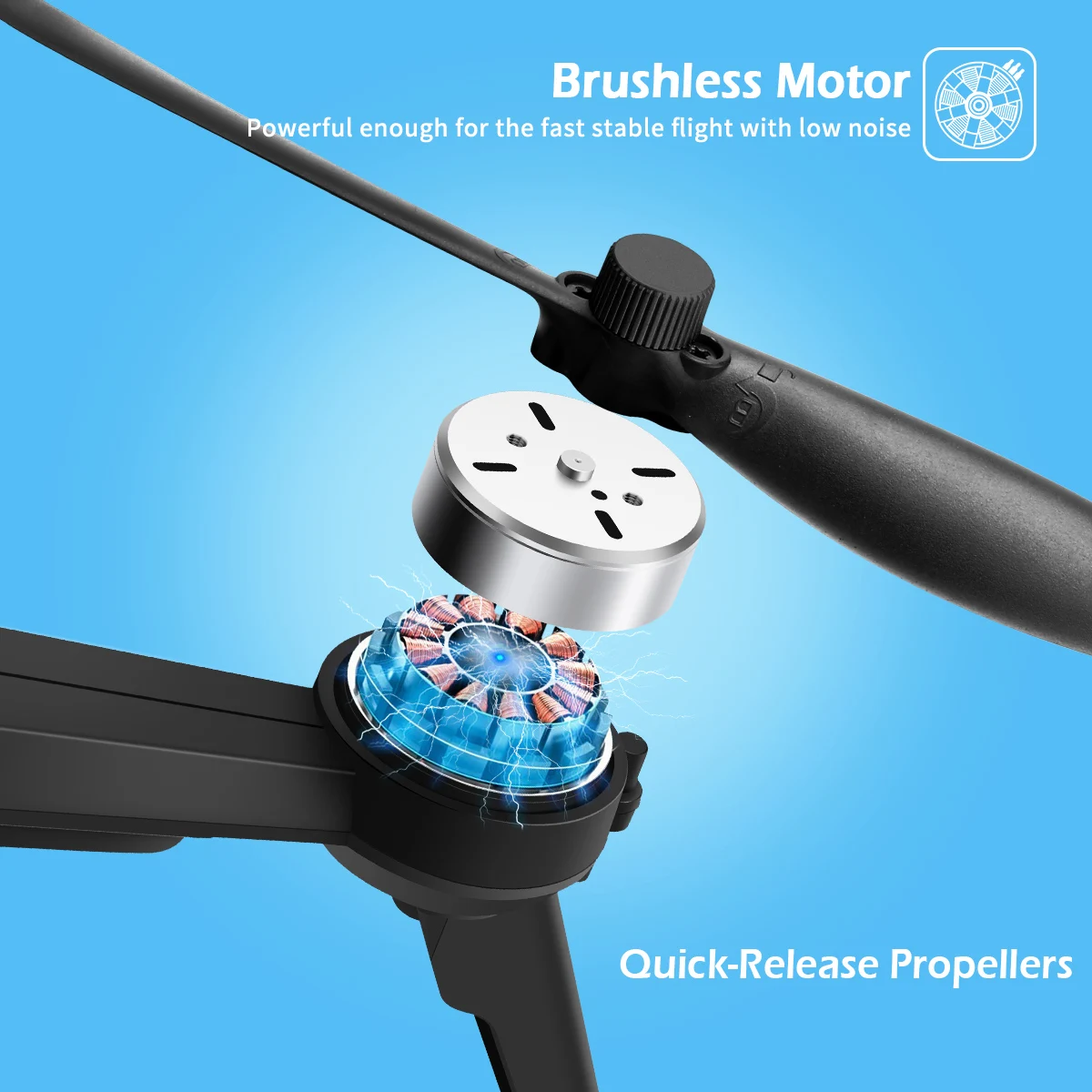 Расширенный 2204 1500KV бесщеточные двигатели дает вам более тихий и мощный полет в высокоскоростной (макс. 45 км/ч), который делает ваш полет доставит вам удовольствие. Усовершенствованные быстросъемные пропеллеры работают с более высокой эффективностью.