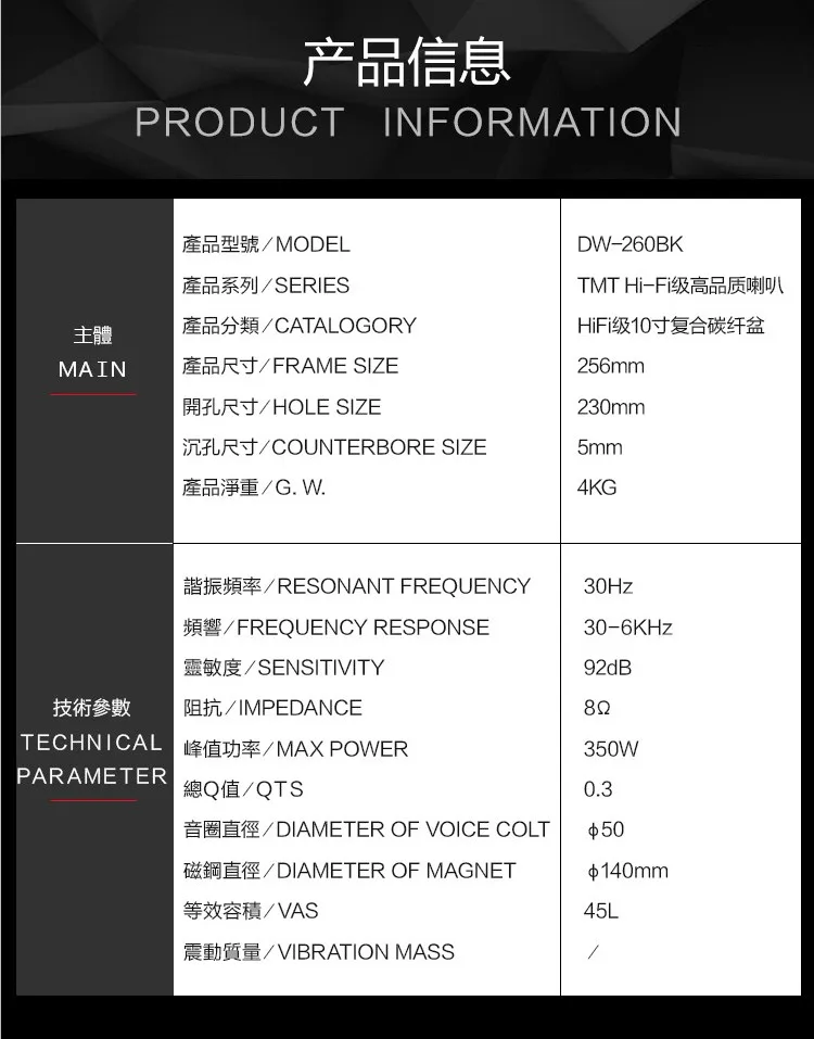 Отзывы о TMT DW-260bk hifi 10-дюймовый динамик высококачественный композитный из углеродного