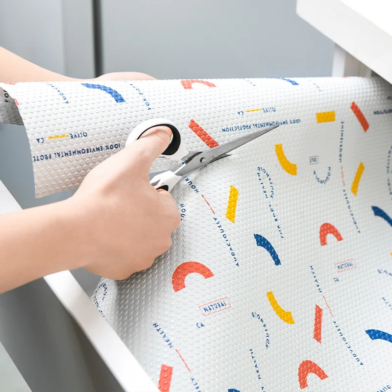 Он имеет структурный выпуклый горошек текстурированный дизайн сверху Для определенного эффекта захвата и легкого обрезания, а также гладкого рисунка на дне для плоской укладки. Неклеящиеся поверхности с обеих сторон обеспечивают Нет липкого остатка На полке после его замены.![]()