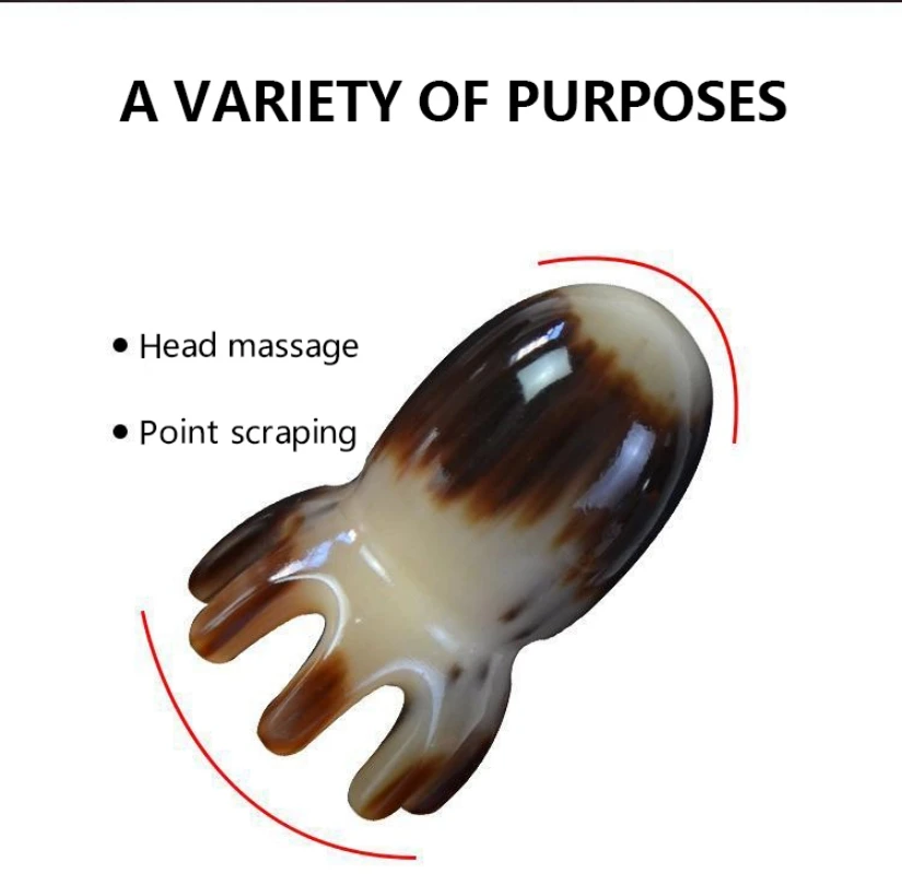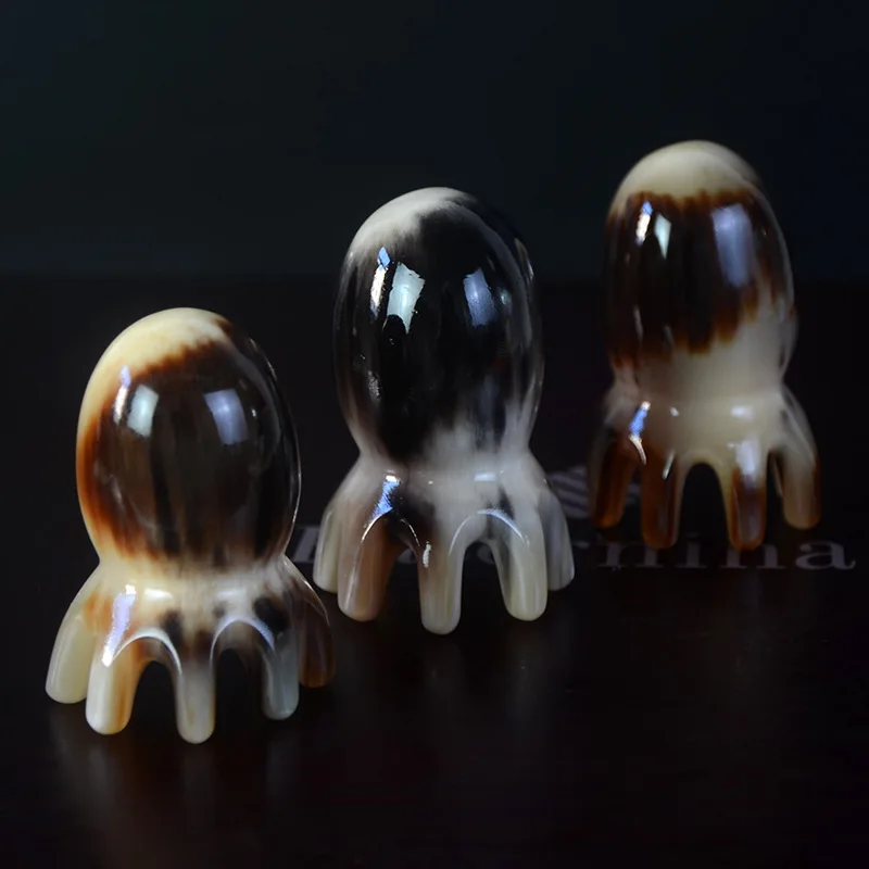 1 шт. натуральный Рог яка Gua Sha Осьминог гребень головка Меридиан соскабливание щетка для массажа головы акупунктура спа терапия снятия стресса инструмент для снятия стресса