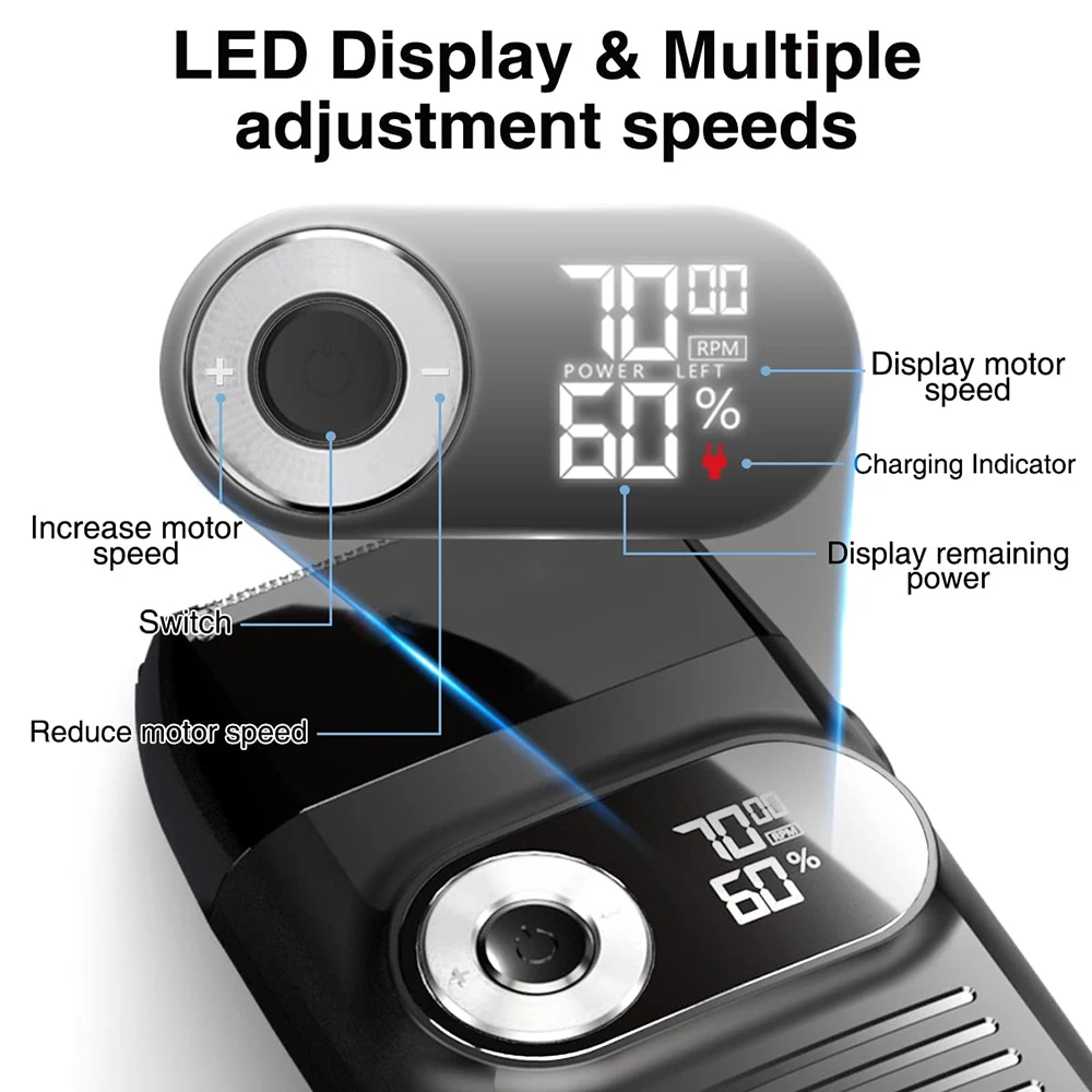 ЖК-дисплей, напоминание о зарядке, напоминание о регулировке скорости, напоминание о доле заряда батареи