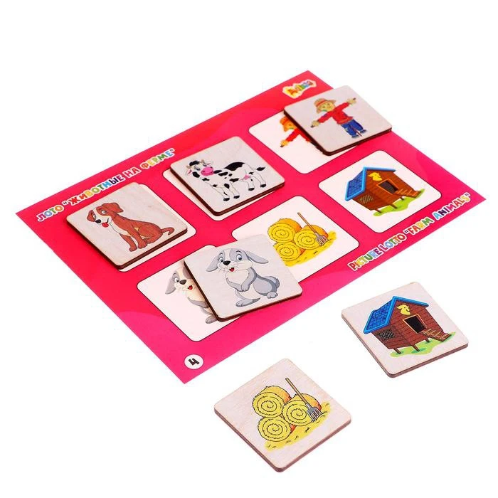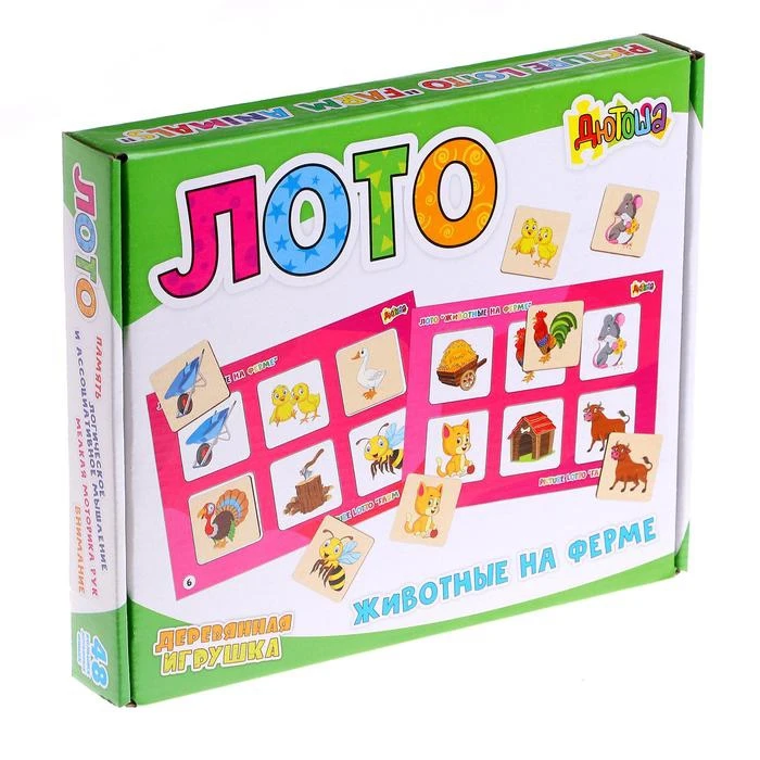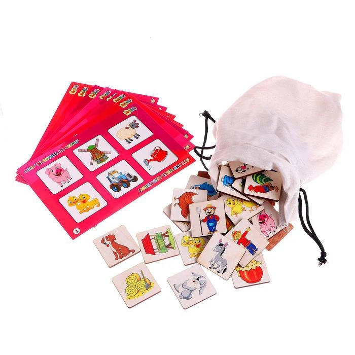 Отзывы о Лото большое Животные на ферме (48 деревянных фишек + 8 карточек мешочек) | Игрушки и