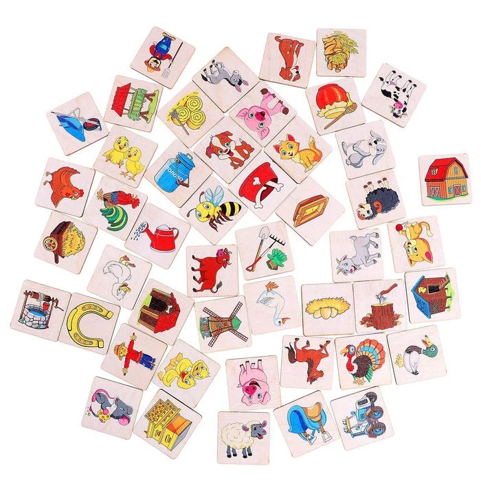 Лото большое «Животные на ферме» (48 деревянных фишек + 8 карточек + мешочек)
