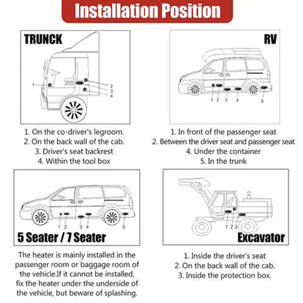 4. Простая установка: нагреватель имеет компактную конструкцию, которую легко установить, и его можно использовать в различных узких пространствах, после замены транспортного средства, его можно снять и использовать для нового транспортного средства.