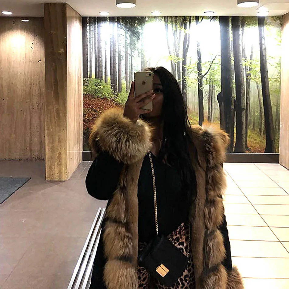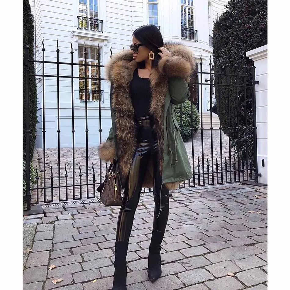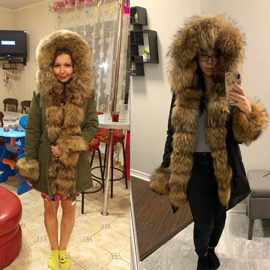 Отзывы о Женская парка с мехом енота на капюшоне водонепроницаемая длинная теплая куртка