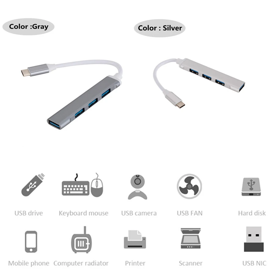 Подходит для порта type-c компьютер и мобильный телефон расширение передачи данных, стандартная USB3.0 теория 5 Гбит/с Высокоскоростная передача, может фактически SUB2.0 мульти-порт расширения, такие как: мышь, соединение клавиатуры, подключение периферийного устройства, ссылка на мобильный телефон через usb-порт, разделяющий порт, такой как зарядка.