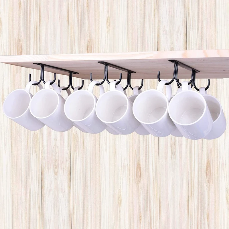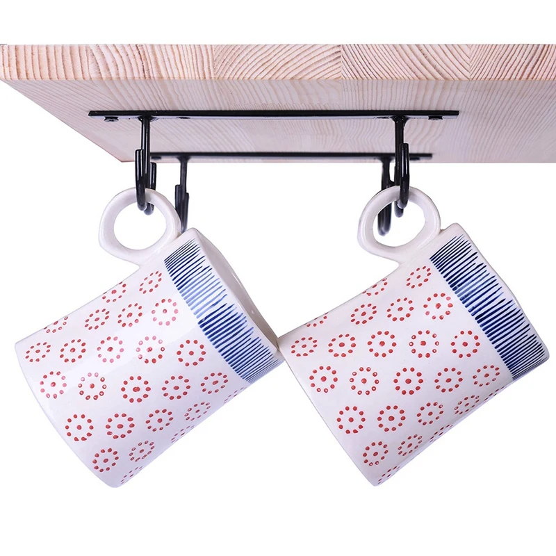 5 деревенских кружек с 20 крючками надежно удерживают кружки под шкафом или прилавком.