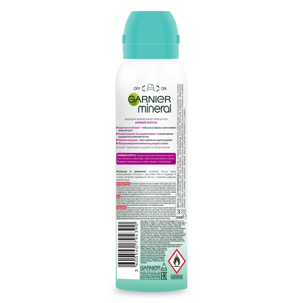 Garnier Дезодорант-антиперспирант спрей "Mineral Активный контроль" с активным минеральным компонентом защита 48 часов 150 мл