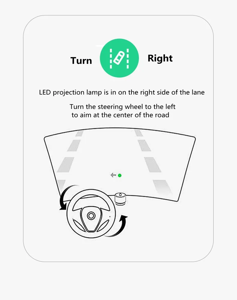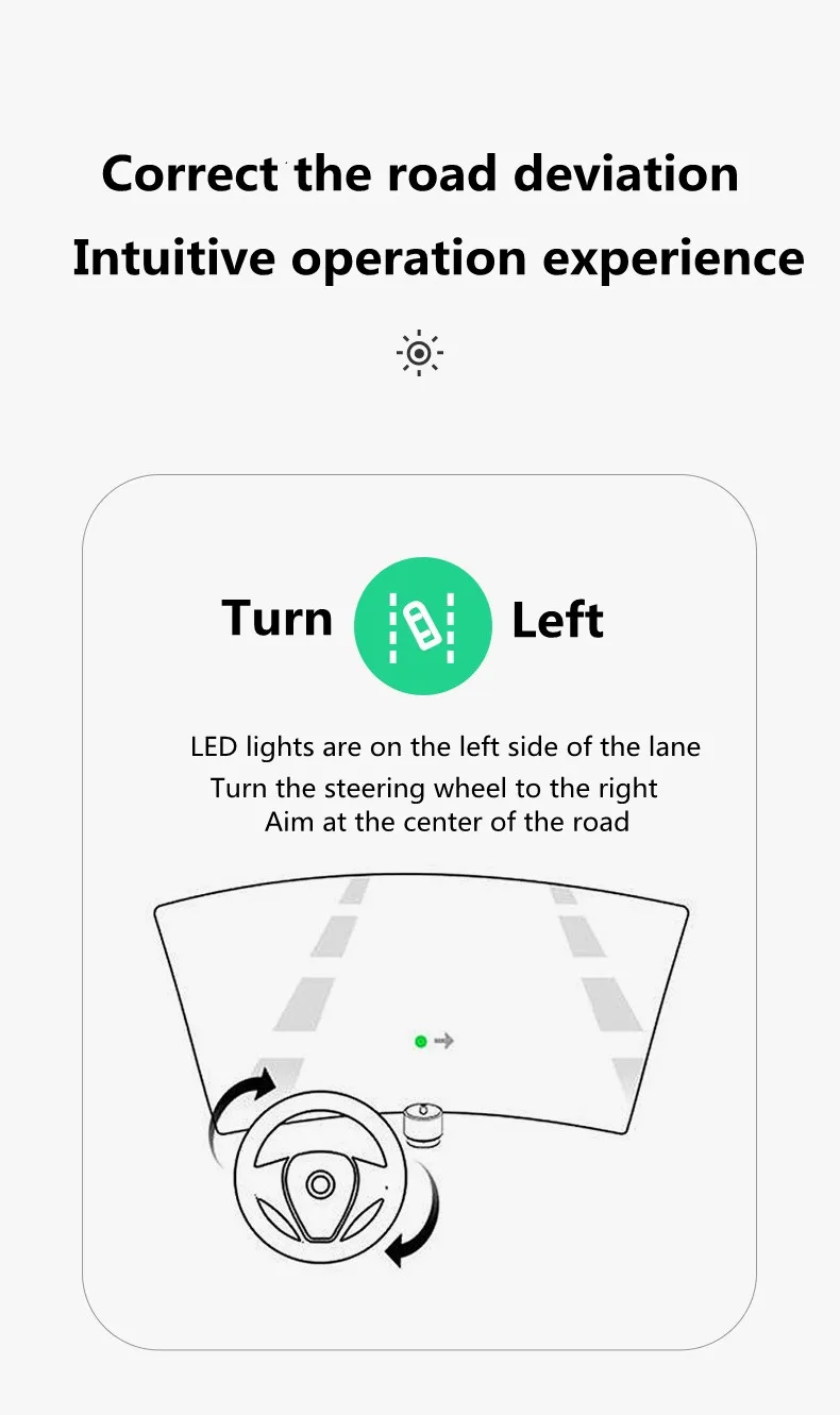 There is a led projection light,after you install the device according to our manual,the led light will projects on the windshield,if it projects on the left of windshield,then you need to turn the steering wheel to the right,when it projects on the right of the windshield,you need to turn steering wheel to the left,which can help you to avoid collision