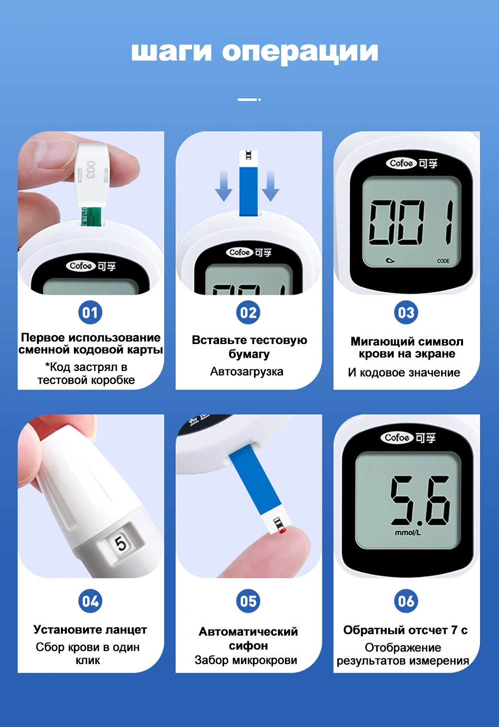 Отзывы о Измеритель уровня глюкозы в крови Cofoe Yice тест-полоски ланцеты глюкометр монитор