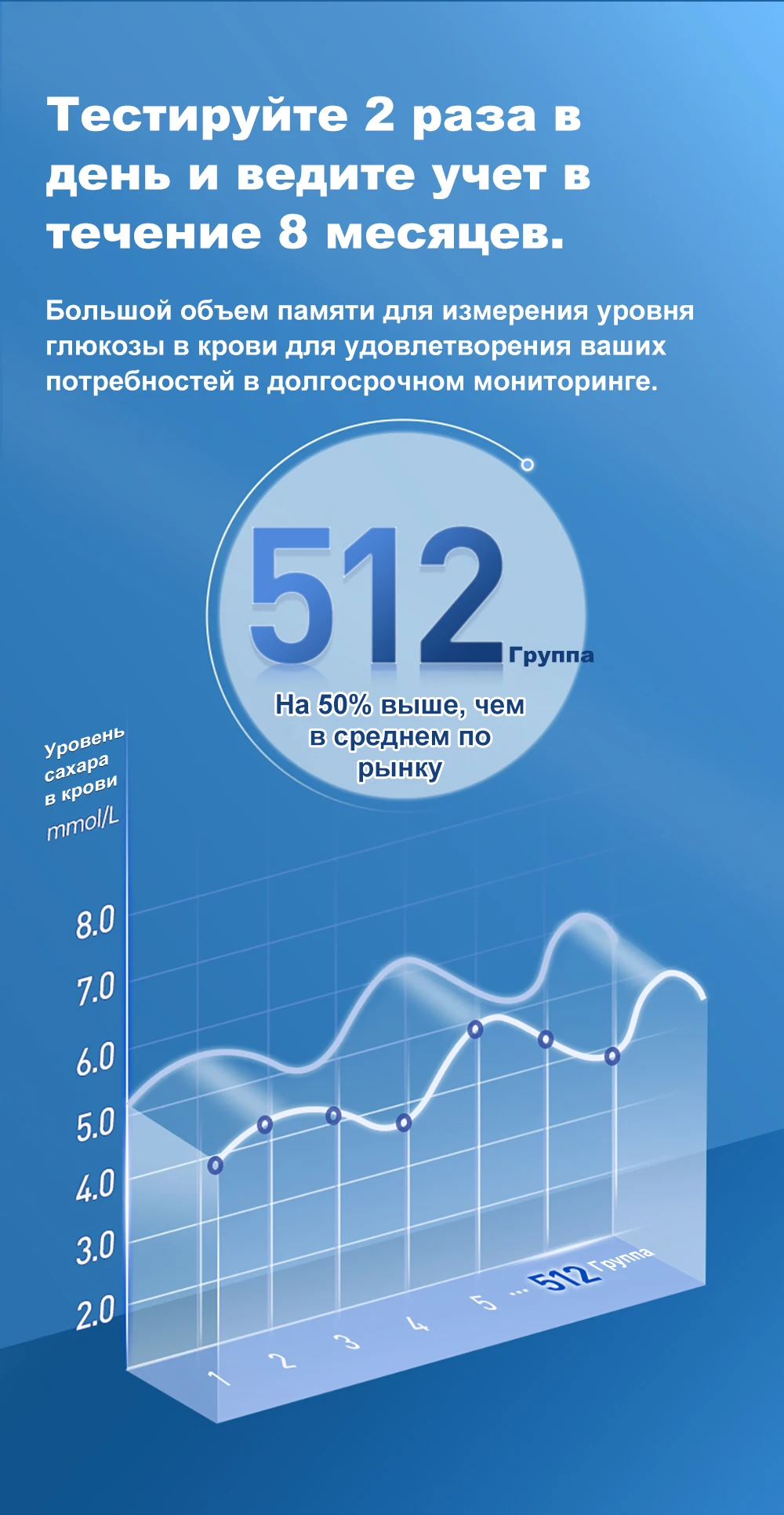 Большая емкость памяти глюкозы в крови для удовлетворения ваших долгосрочных потребностей мониторинга