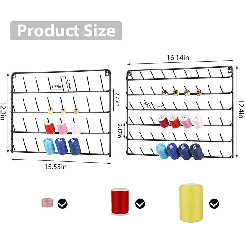 [Быстро найти цвет, который вы хотите] 2 катушки держатель для ниток Органайзер Настенный дизайн, и есть десять слоев в общей сложности. Каждый слой штифтов может быть хорошо организованы с различными цветами и различными типами шпилек. Вы можете быстро найти цвет, который вы хотите, когда вы смотрите, чтобы получить более расслабленный опыт организации в день шитья.