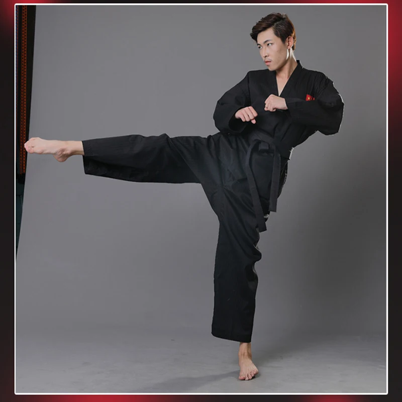 Отзывы о Профессиональная Черная Форма для карате с поясом костюм тхэквондо взрослых