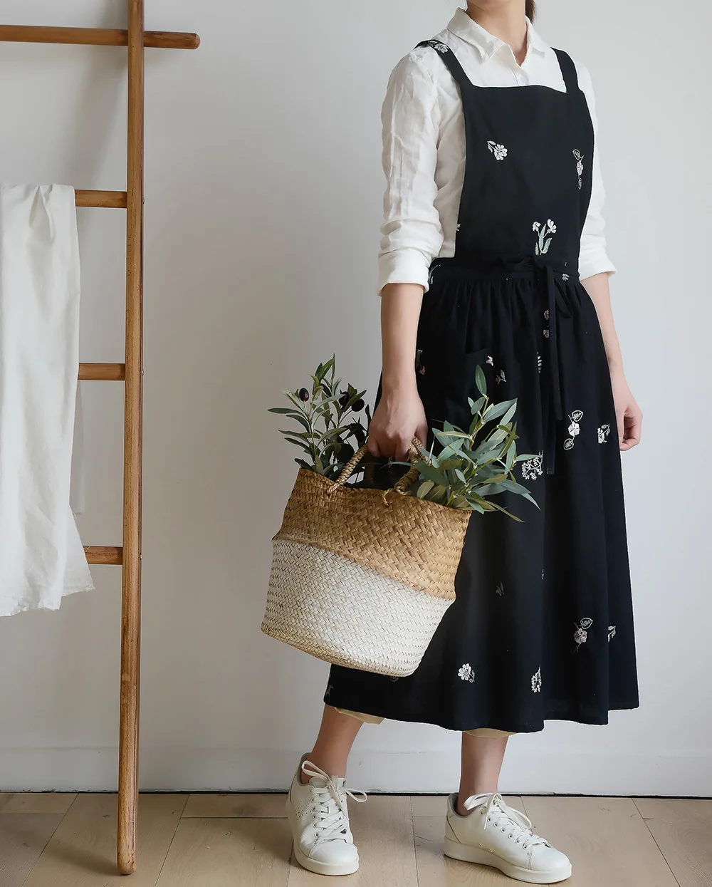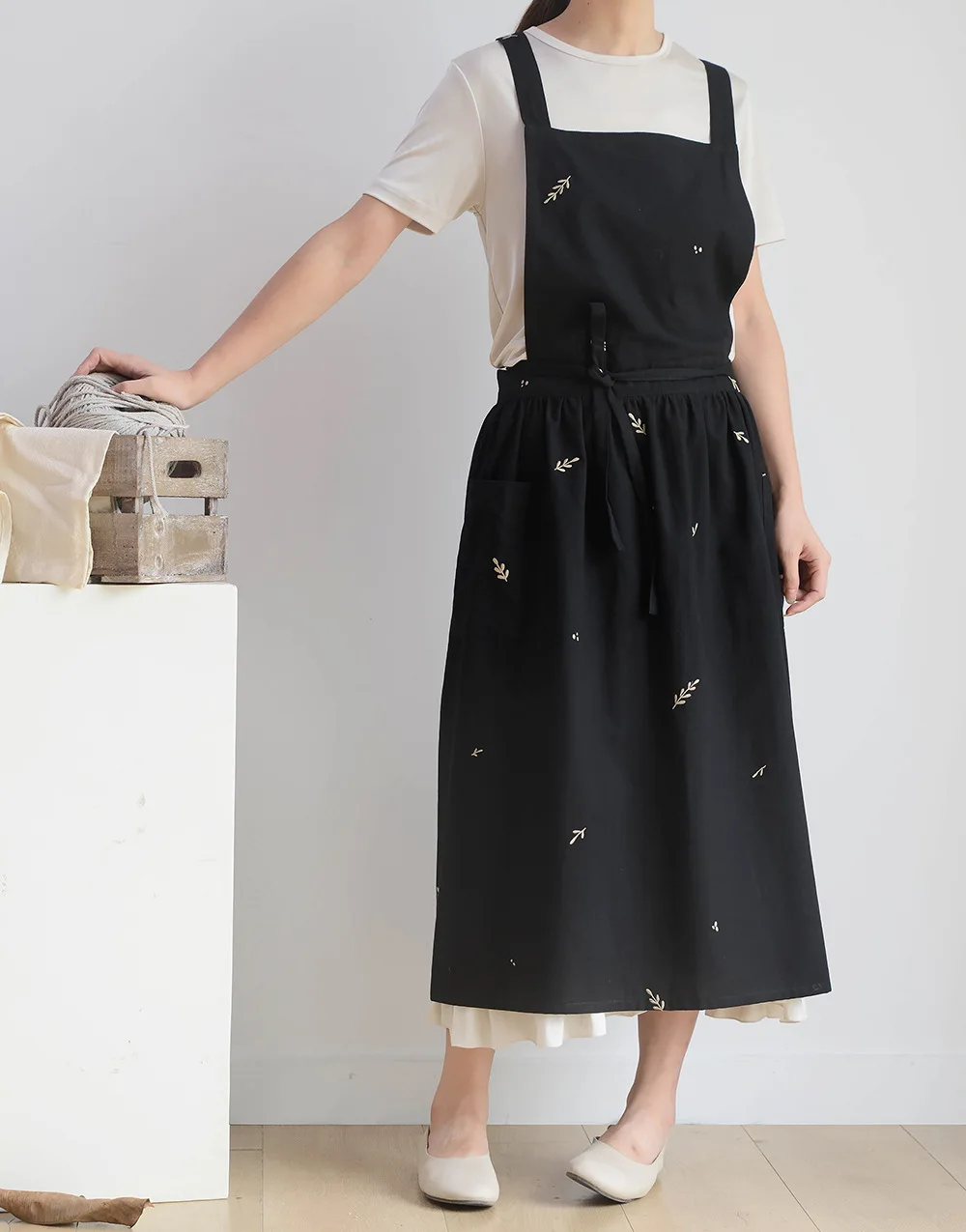 Отзывы о Хлопковый фартук с вышивкой X-Back передник перекрестной спинкой карманами для