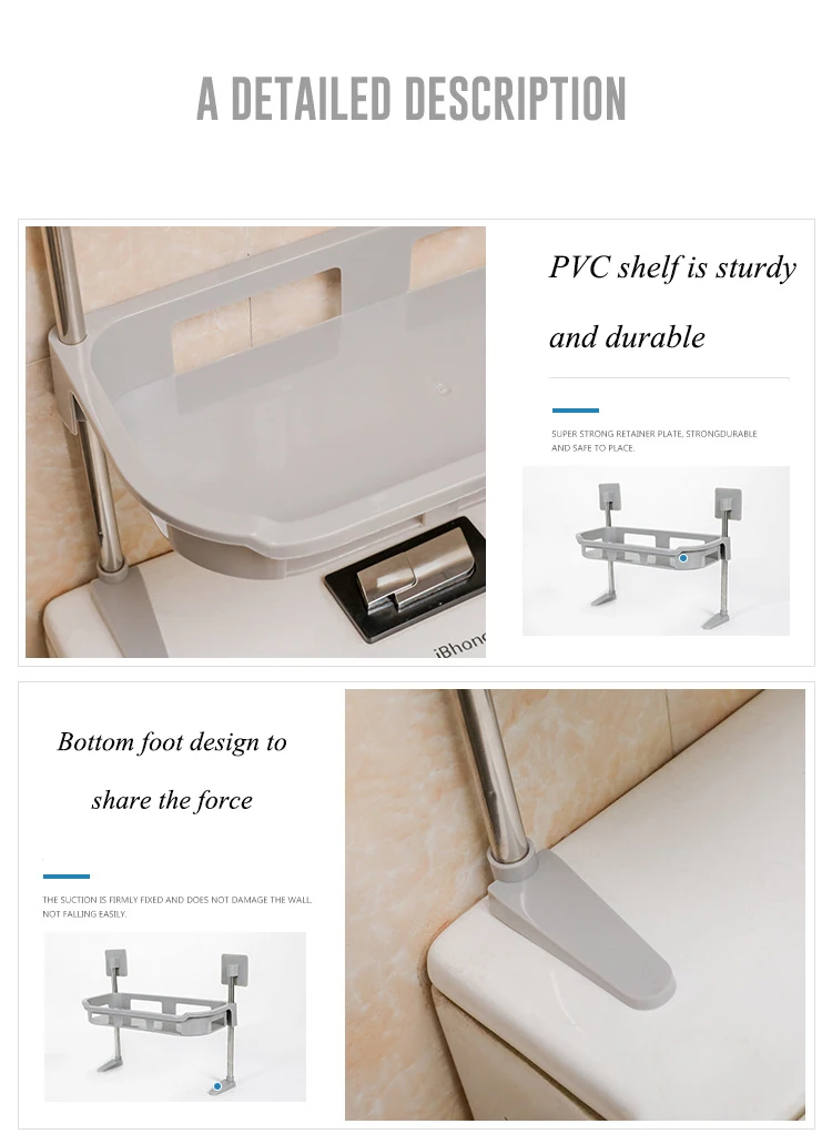 【Прочный и прочный материал 】 над туалетным помещением изготовлен из высококачественного твердого материала, который является прочным. Поверхность легко чистится, что делает возможным длительное использование. Бесследный прозрачный клей, проверенный предел нагрузки 31 фунтов. Не требуется сверление, инструменты и винты, не повреждена стена